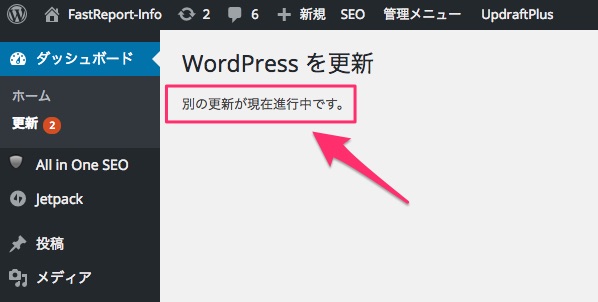 WordPressで「別の更新が現在進行中です。」メッセージが出た場合の対処方法について、ご紹介しました。
