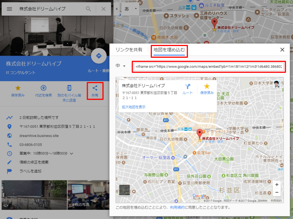 - 埋め込みたい住所を指定する(場所を表示させる)